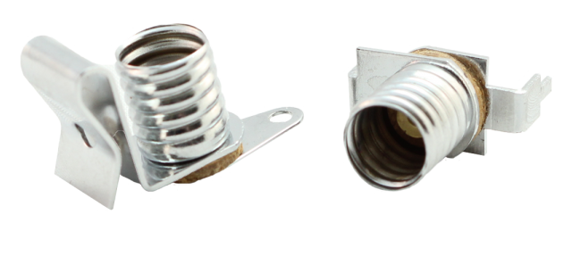 We carry a selection of miniature lampholder configurations and can customize any part of the component to fit your application specifications. Aeronautical Electric's miniature lampholders can be manufactured with screw bases or bayonet bases and insulated or uninsulated. The miniature lampholder is commonly used in panel backlighting such as in pinball or slot machines. It can also be combined with a lens assembly for use as an indicator light in applications such as transformer lockout switches or guitar amplifiers. The miniature lampholder is available with one or two terminals, either solder, screw, printed circuit Board, 3/16” quick disconnect, or customized connection types.